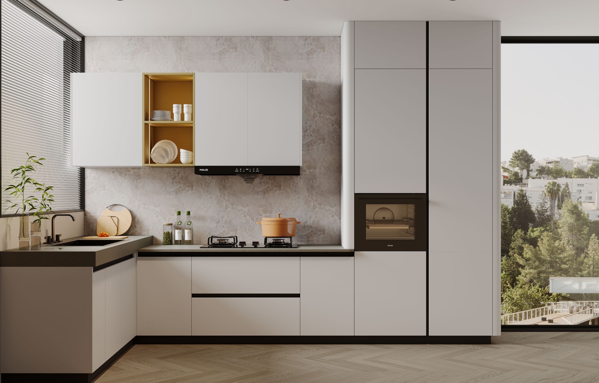 通过龙8头号玩家唯一官方网站厨柜量体裁柜,定制出适合主厨下厨的烹饪区和洗涤区的舒适高度。